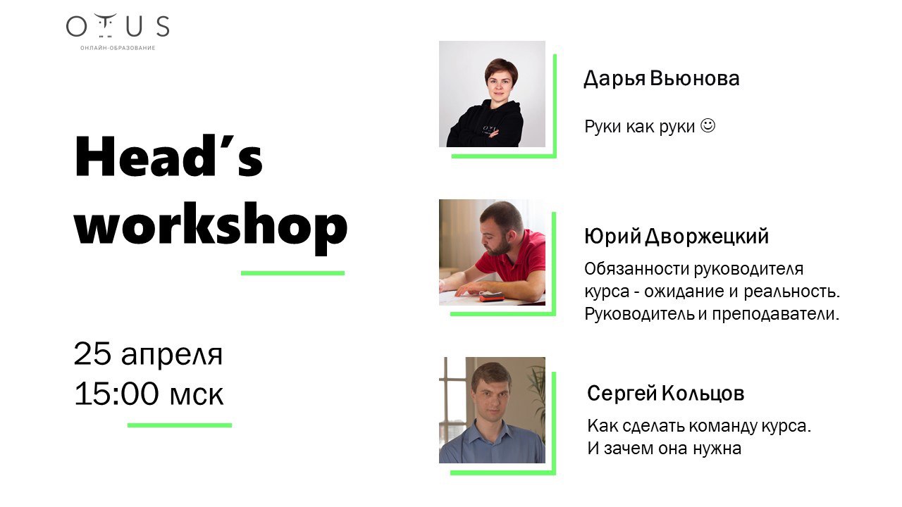 Уже в эту субботу в 15:00 пройдет Head’s workshop.