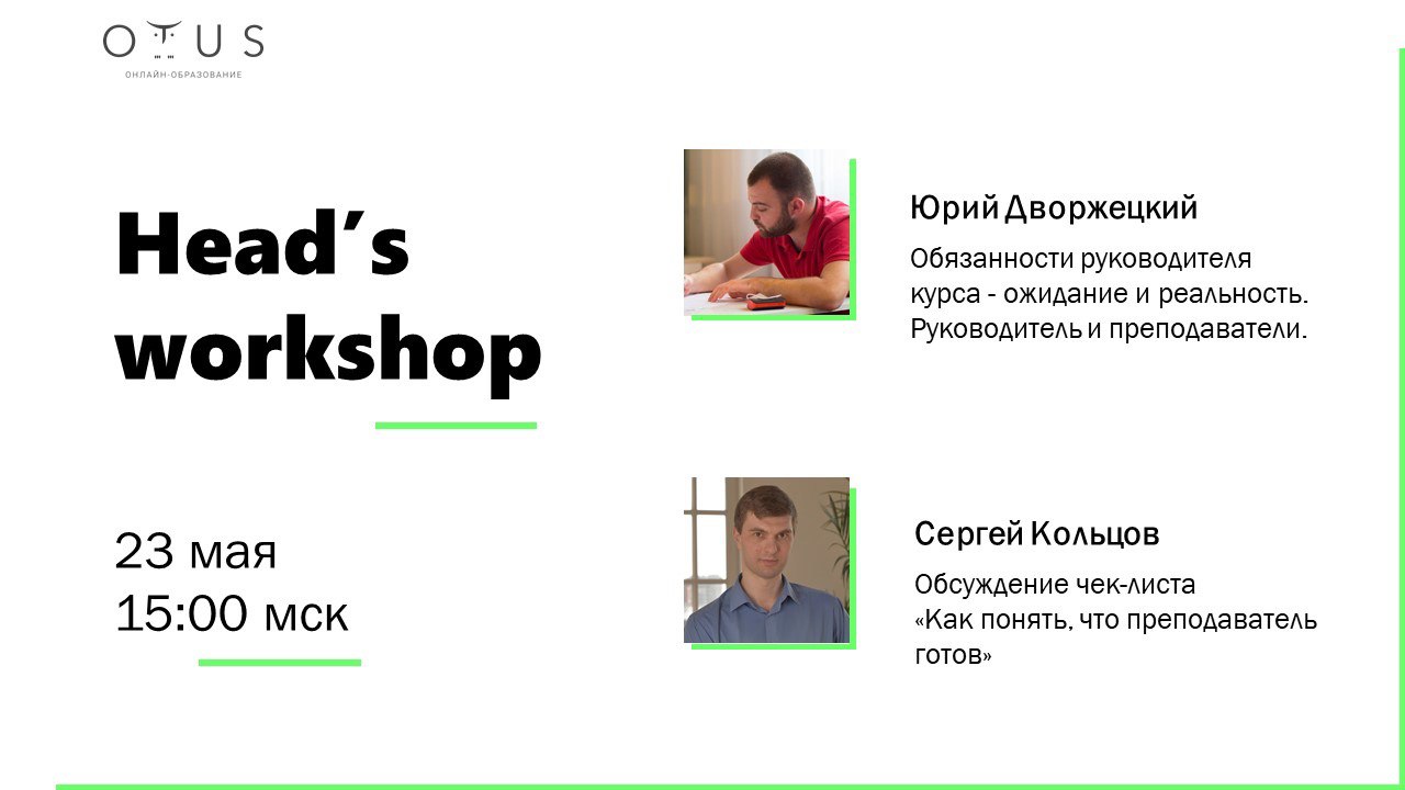 Приглашаем руководителей курсов в субботу (23.05), в том же месте (Zoom) в 15:00 по мск на Head’s workshop.