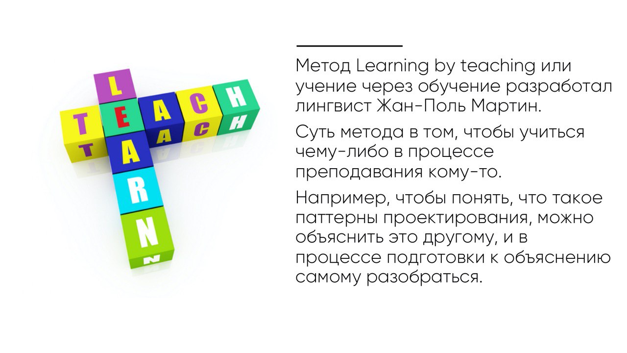 В прошлый четверг (дублируем ссылку на пост) мы вам загадали один из методов преподавания 🤔 и большинство проголосовали за «Learning by teaching» и... были правы 😍