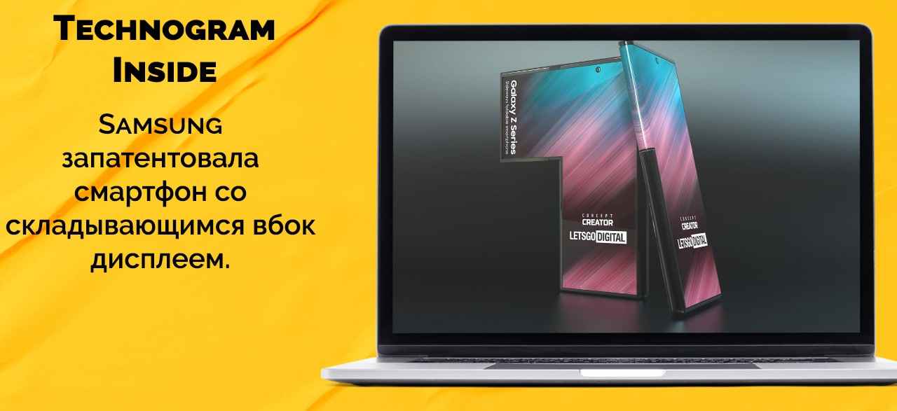 LetsGoDigital и Concept Creator представляют новейший L-образный смартфон корейского производителя телефонов в виде рендеров. В патенте используется складной дисплей, который открывается вбок. Устройство можно будет держать вертикально или боком, при этом «створка» вспомогательного дисплея открывается влево или вверх соответственно.
