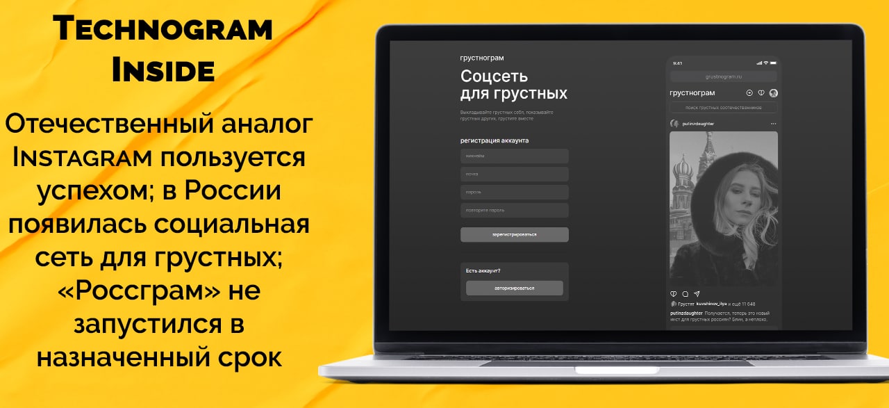 2. В России появилась социальная сеть для грустных — «Грустнограм». Соцсеть автоматически делает все фотографии черно-белыми, вместо подписчиков там «грустные соотечественники», ну а вместо лайков - разбитые сердечки.