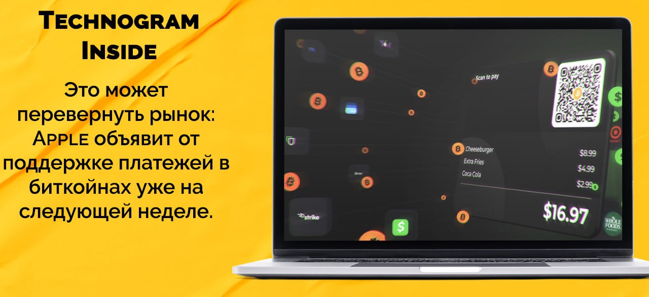 Ожидается, что в этом году Apple объявит о поддержке платежей в биткойнах в системе Apple Pay через кошелёк Strike на базе сети Lightning Bitcoin, что позволит пользователям более чем миллиарда устройств Apple совершать платежи в самой популярной в мире криптовалюте.