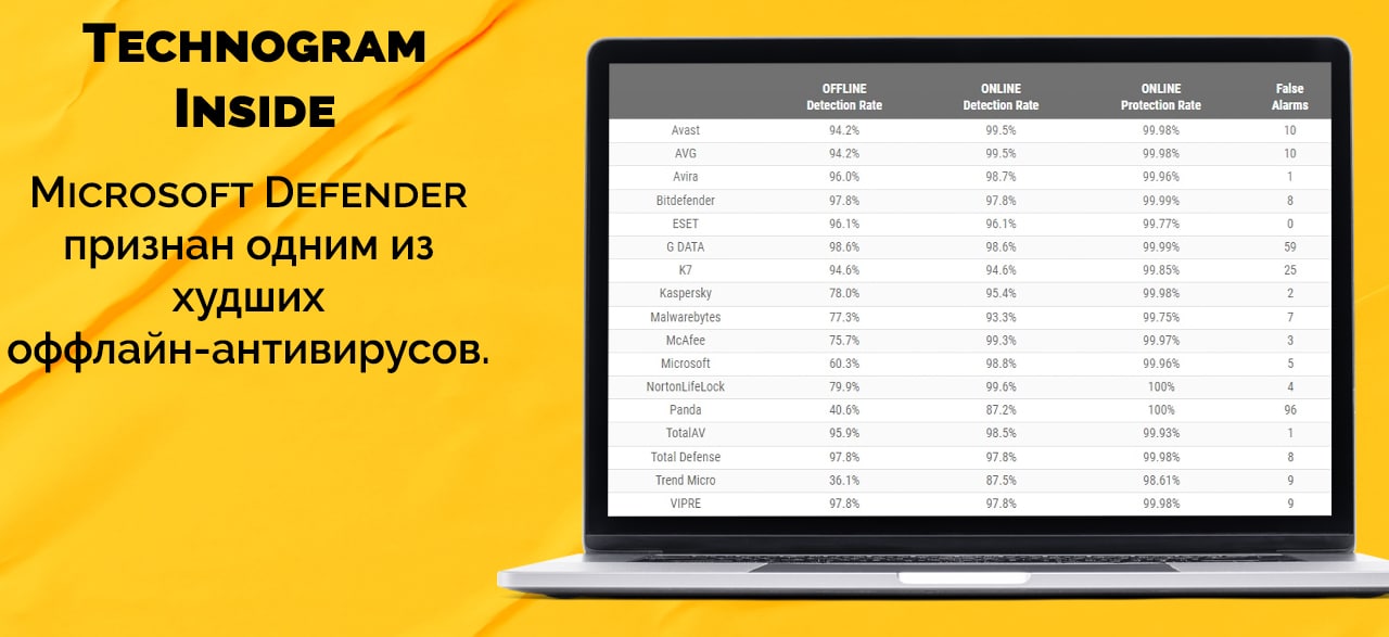 Microsoft Defender признан одним из худших оффлайн-антивирусов