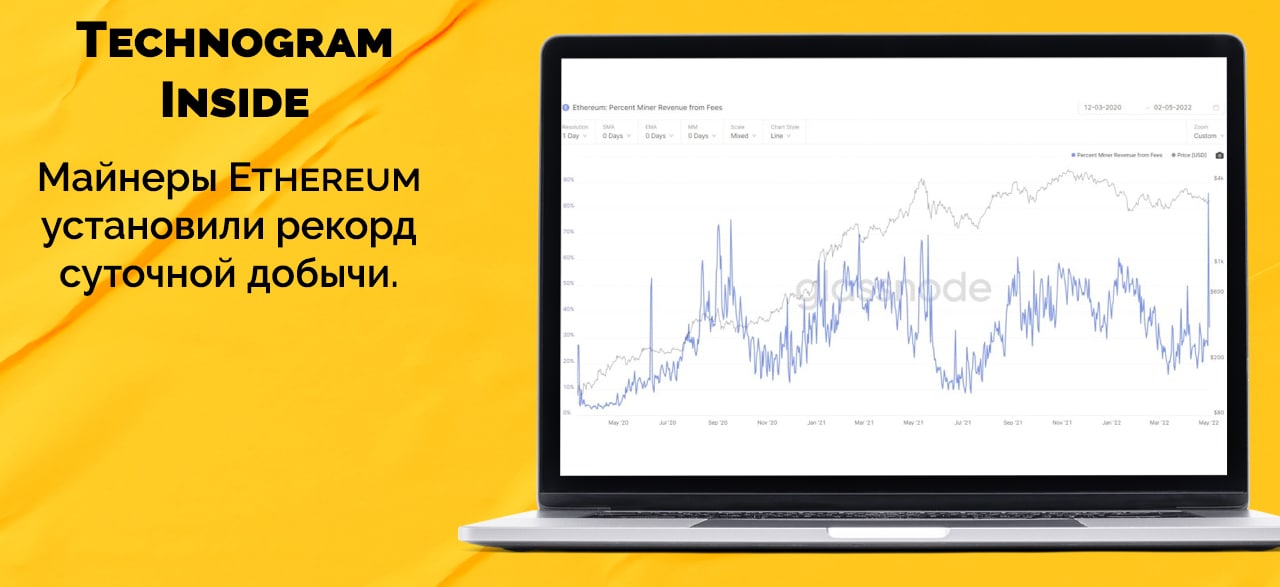 Суточные заработки добытчиков Ethereum побили очередной рекорд. По данным сервиса Glassnode, данный показатель добрался до рекордных 95 182 ETH в сутки.