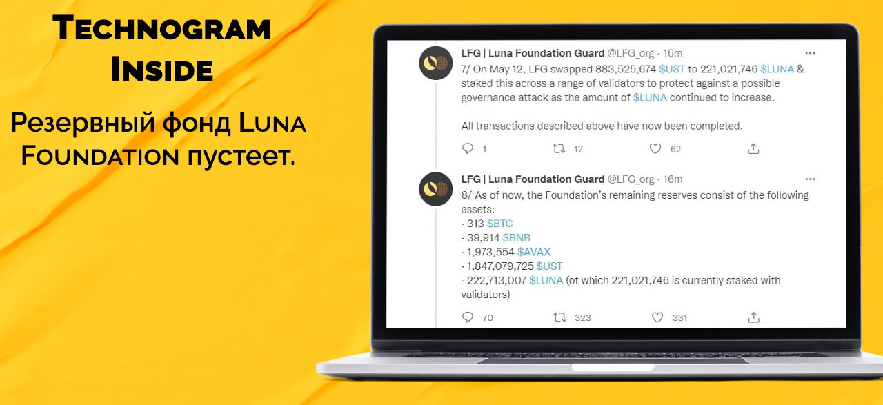 LUNA официально подтвердила, что продала все свои BTC для поддержки UST. На балансе LFG осталось 1.97 млн AVAX которые они планируют реализовать в ближайшее время.