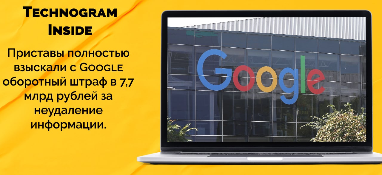 Приставы полностью взыскали с Google оборотный штраф в 7,7 млрд рублей за неудаление информации