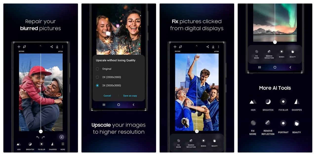 Ещё в начале июля Samsung выпустила в своём магазине приложений Galaxy Store новый фоторедактор Galaxy Enhance-X, информация о котором разлетелась по интернету только сейчас. Программа предназначена для всяческого улучшения фотографий и использует для этого технологии искусственного интеллекта.