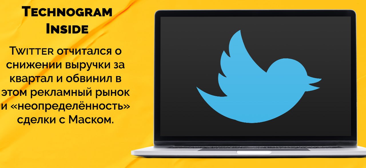 Twitter отчитался о снижении выручки за квартал и обвинил в этом рекламный рынок и «неопределённость» сделки с Маском
