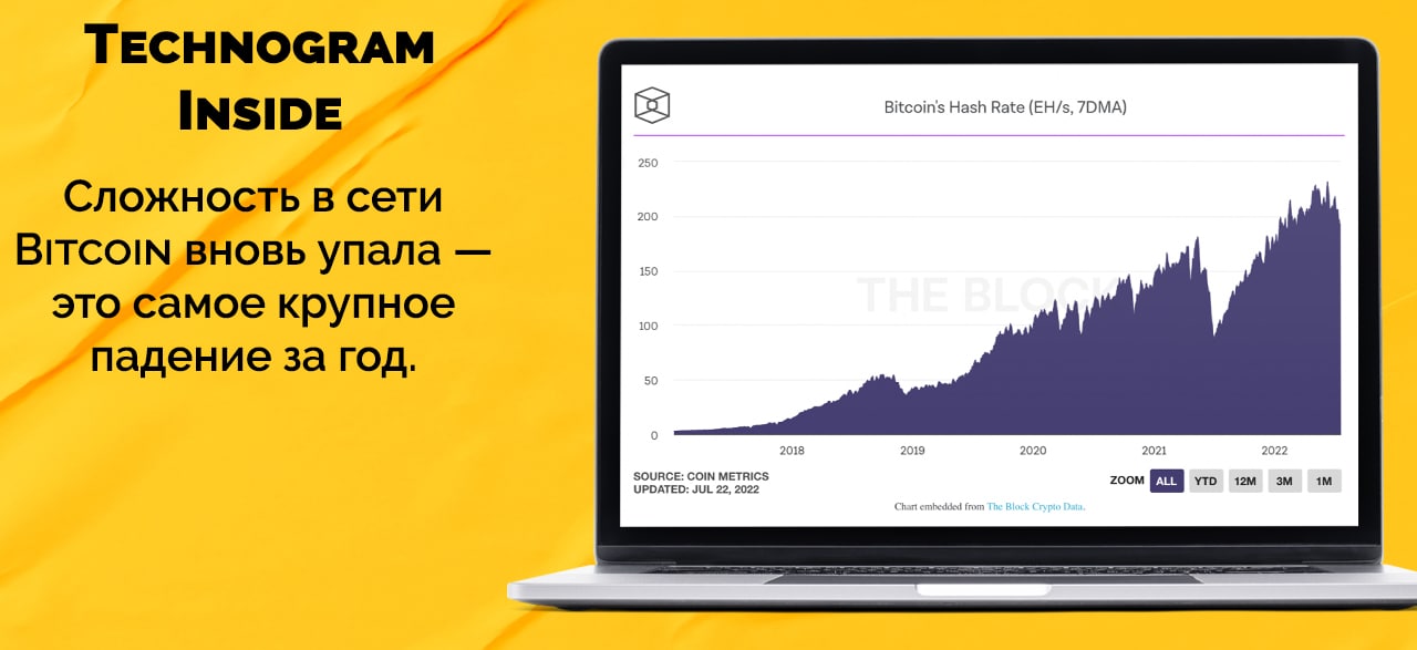 Вместе со сложностью майнинга, упал и хэшрейт сети BTC. Падение составило 8,9 % (с 6 июля).