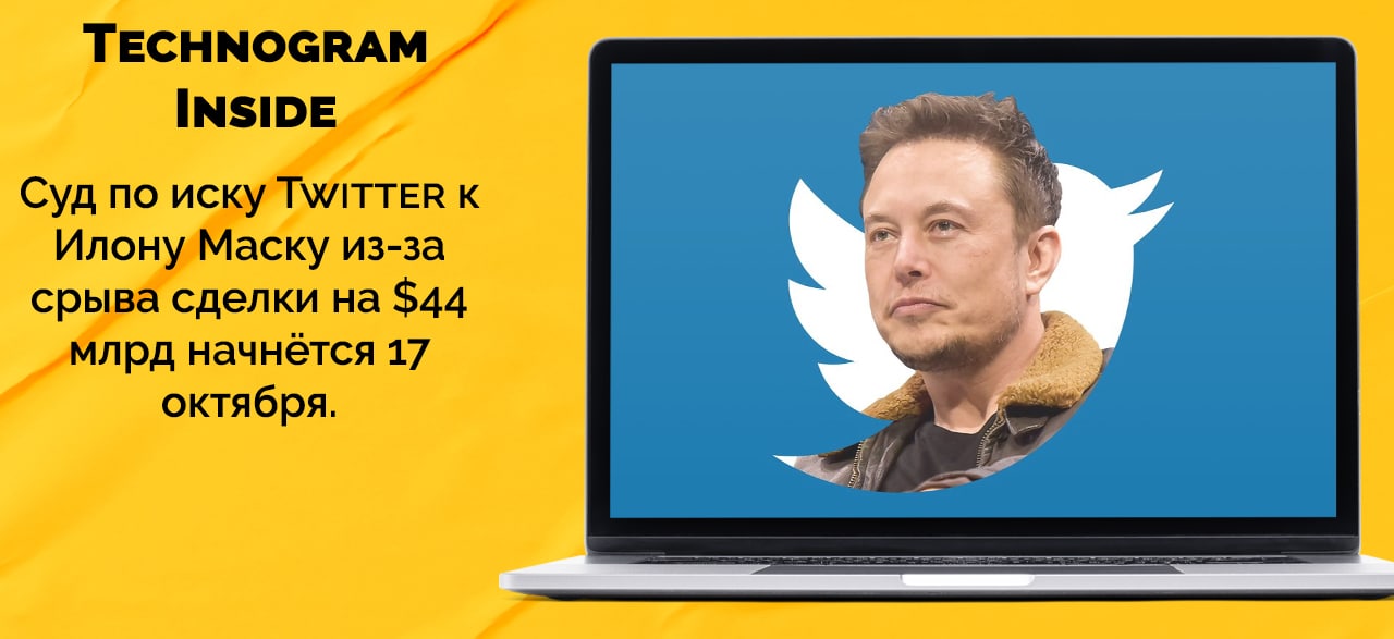 Суд по иску Twitter к Илону Маску из-за срыва сделки на $44 млрд начнётся 17 октября