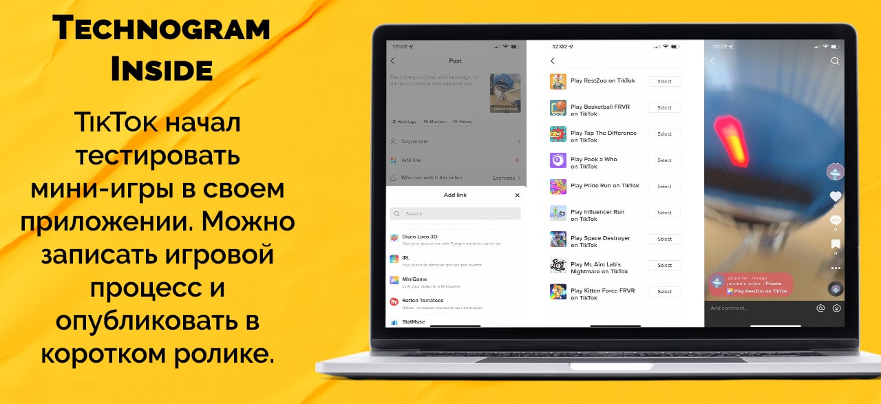 TikTok начал тестировать мини-игры в своем приложении. Можно записать игровой процесс и опубликовать в коротком ролике