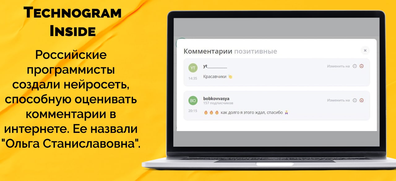 "Ольга Станиславовна" — нейросеть, которая умеет просматривать комментарии в социальных сетях и анализировать их окраску (позитивную, негативную и нейтральную). "Ольгу Станиславовну" внедрили в сервис по мониторингу активности каналов и блогов LiveDune.
