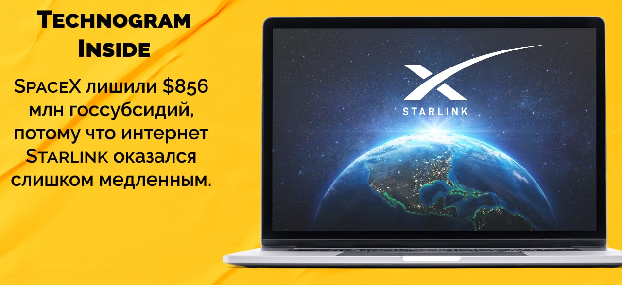 Американская компания SpaceX лишилась $856 млн правительственных субсидий, поскольку отраслевой регулятор в лице Федеральной комиссии по связи (FCC) США счёл систему спутникового интернета Starlink слишком медленной. В ведомстве отметили, что занимающееся спутниковым интернетом подразделение SpaceX "всё ещё разрабатывает технологию" и компания "не смогла продемонстрировать способность предоставить обещанные услуги".