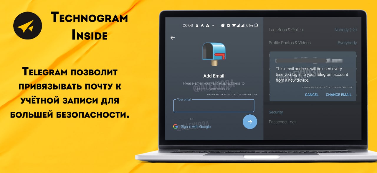 Telegram усиливает безопасность мессенджера. Команда разработчиков сейчас работает над тем, чтобы пользователи могли связать свои учётные записи с идентификатором электронной почты. После этого Telegram будет использовать его для проверки каждый раз, когда пользователь авторизуется в приложении с нового устройства.