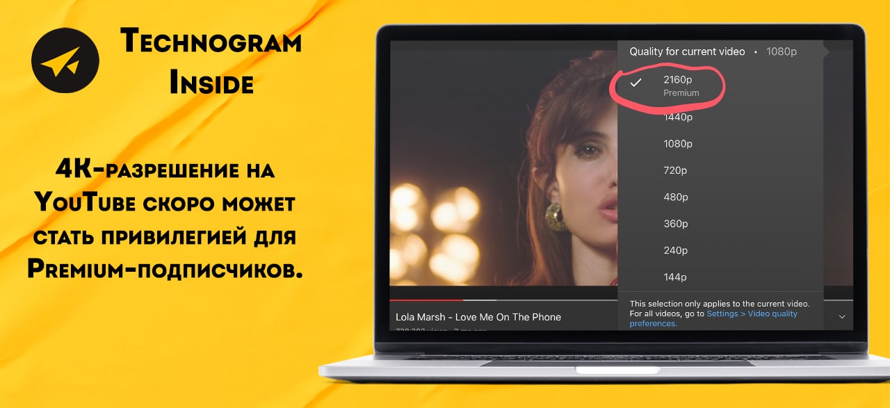 Некоторые пользователи YouTube обнаружили, что при выборе качества некоторых видео разрешение 2160p оказывается заблокированным, если на аккаунте нет подписки YouTube-Premium. Однако сейчас неизвестно, в каких странах, и на какие видео распространяется данное нововведение видеохостинга.