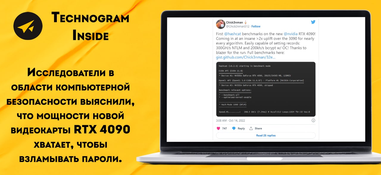 Исследователи в области компьютерной безопасности выяснили, что мощности новой видеокарты RTX 4090 хватает, чтобы взламывать пароли