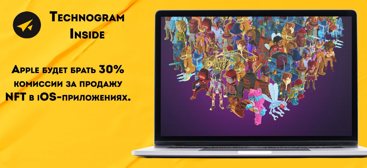 Apple обновила правила в App Strore. Так, например, она разрешила продавать NFT через приложения в App Store. Но все покупки должны совершаться через внутреннюю платёжную систему в магазине приложений, а значит, с них будут взимать 30% комиссии. Предлагать переходить для оплаты на другие сайты нельзя.