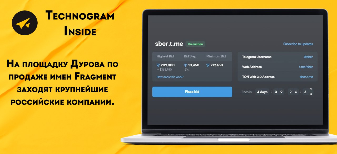 На площадку Дурова по продаже имен Fragment заходят крупнейшие российские компании