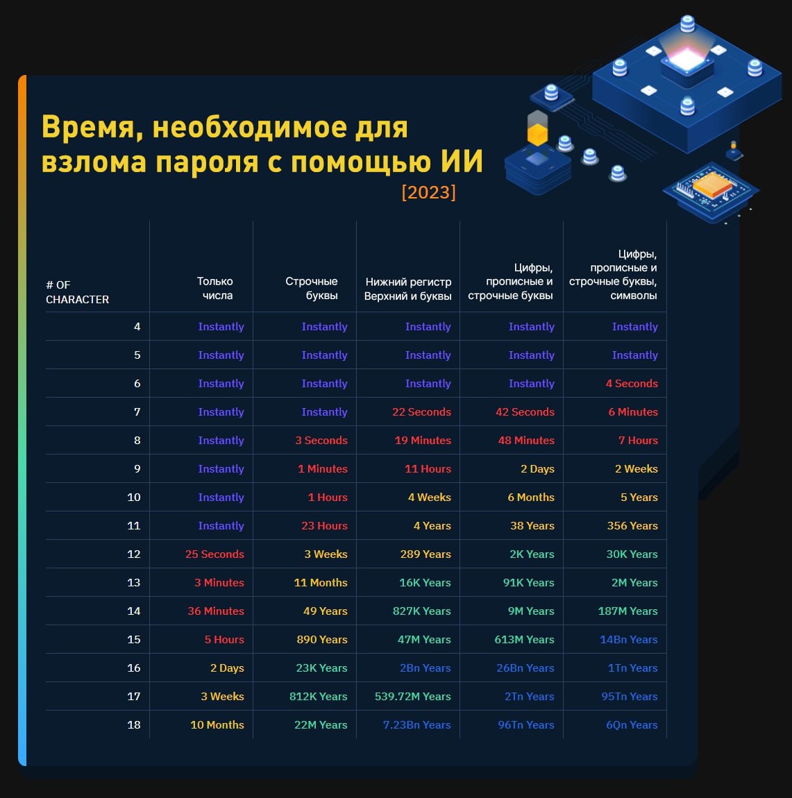 Исследование: простые пароли из 10 символов взламываются с помощью ИИ мгновенно.