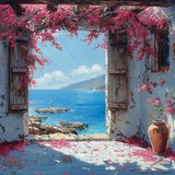 It's situated on a high rocky cliff, offering a breathtaking panoramic view of the Aegean Sea.