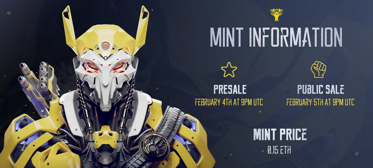 • Паблик 5 февраля, 00:00 по мск (ночь с 5 на 6), 0.15 ETH, лимит 3 нфт на кошелек