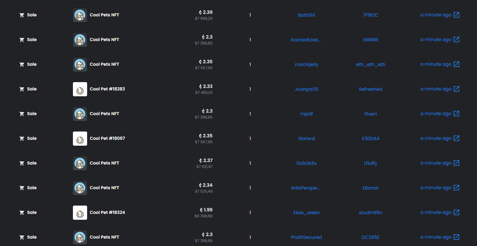 Как вы видите, пользователь за 1 транзакцию покупает сразу очень много NFT, а сама транзакция идет вообще на другой контракт.