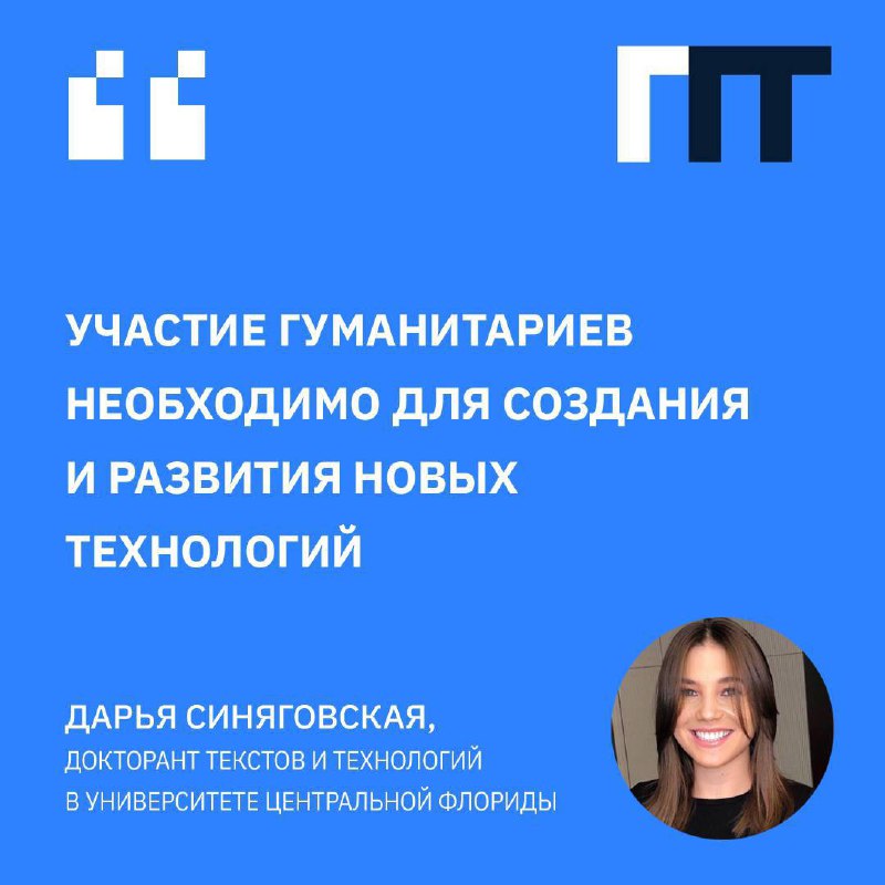 Дарья Синяговская, докторант Текстов и Технологий в университете Центральной Флориды, рассказала, какую роль в создании новых технологий играют гуманитарии.