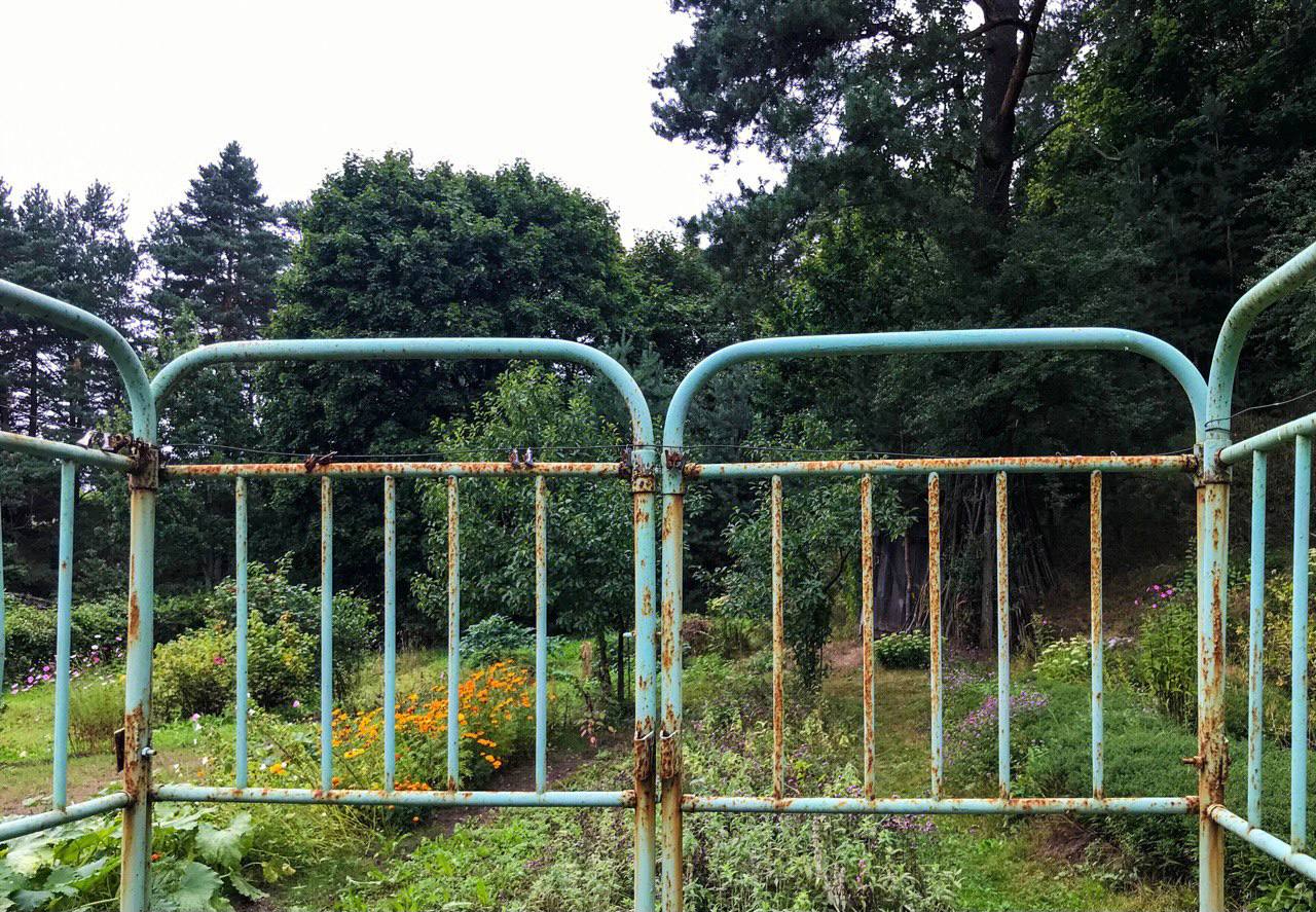Побывал в Невьянске, городе с двадцатитысячным населением в 74 километрах от Екатеринбурга. Во время прогулки по окрестностям обнаружил дом с оградой и калиткой из изголовий железных кроватей.