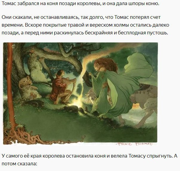 Сегодня Александра Пустовойт художественно излагает красивую переведённую шотландскую легенду XVIII века «Томас-Рифмач». Технический перевод сказки можно также найти по ссылке.