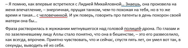 В общем, отличное интервью, многие моменты из которого ясно проявляются только с приходом какого-никакого писательского опыта. Это, наверное, нужно лет пять-шесть какого-то ежедневного упорного труда, чтобы согласиться с таким вот: «Нужно уметь вовремя отпускать тексты и мириться с их несовершенствами. Когда ты очень долго пишешь один текст, в какой-то момент ты понимаешь, что попал на плато и уже не можешь сделать его лучше, — и тогда нужно его отпустить».