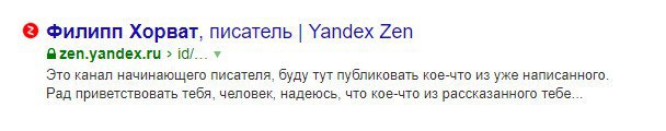 Так, запрос моего имени-фамилии без дополнительных определений выводит на 7-е место топа канал, который я забросил месяца три как уже. Вообще ничего туда не пишу. И, видимо, название этого канала само по себе создало выкидываемый при наборе имени-фамилии запрос «Филипп Хорват писатель» (не специалист в SEO, но подозреваю, что так оно и сработало).
