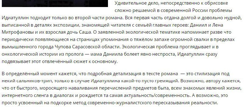 В рецензии на книгу Шамиля Идиатуллина «Бывшая Ленина» немного поразмышлял о своеобразном восприятии современными российскими писателями феномена актуальности. Весь текст рецы на сайте «Текстура».
