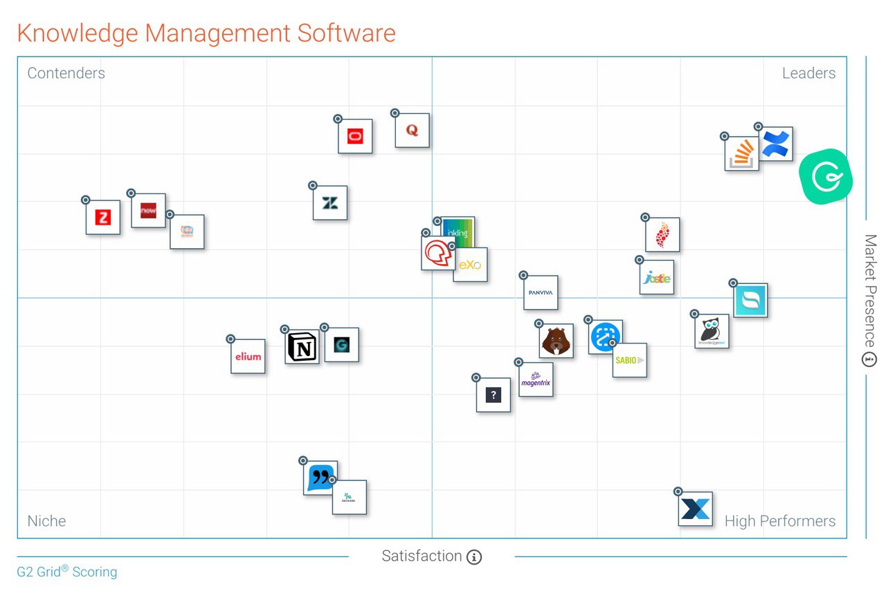 Atlassian, Stackoverflow for teams, Guru - лидеры в числе производителей ПО по управлению знаниями по версии G2