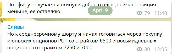 Как я говорил, были опасения, что пойдут выносить шортистов, поэтому на марже мы отшортили меньше, чем планировали. Но шортовую позицию я сформировал через июньские опционы PUT со страйком 6000, 6500.