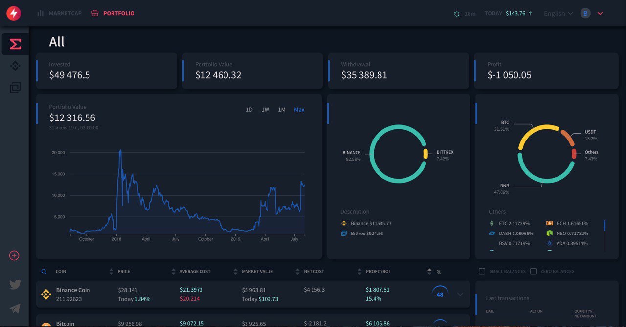 - на сегодня мы выпустили рабочую версию Portfolio с детализированной поддержкой Binance и Bittrex через API ключи (все автоматизированно) ;