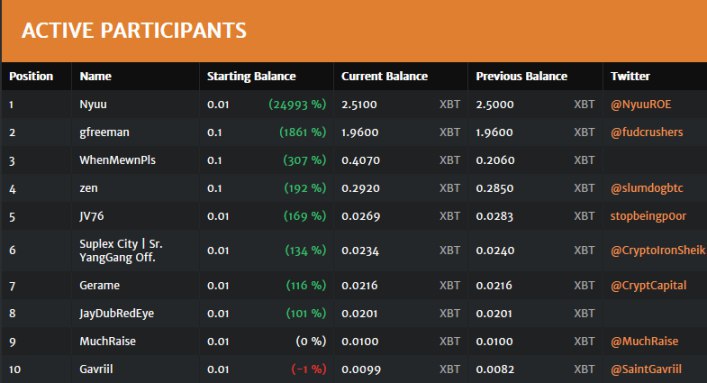 Торговля на Битмекс, все начинают с 0.01 бтц, столько же в призовой фонд скидываем.