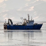 На фото: 13 июня 2003 года. На вечере прощания с ОАО «УТРФ». Капитан СРТМ «Городок» В. Бочкарёв, гендиректор ОАО «УТРФ-холдинг» С. Потапов, конкурсный управляющий А. Лельчук, заместитель градоначальника В. Попов, ветеран УТРФ Г. Иванов, начальник отдела кадров УТРФ Е. Васильев.