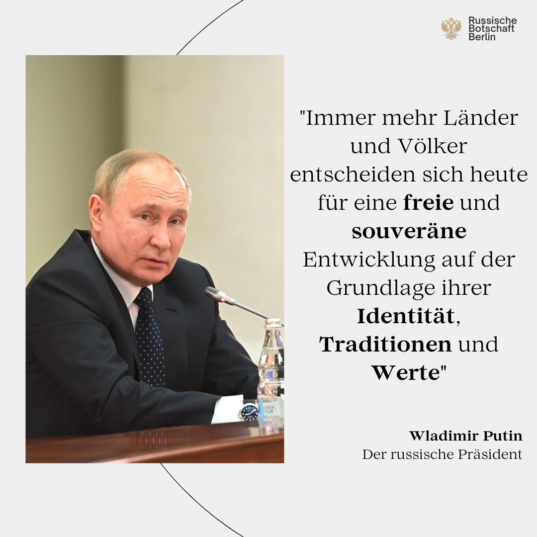 💬 Die Welt verändert sich dynamisch und eine multipolare Weltordnung nimmt ihre Gestalt an. Immer mehr Länder und Völker entscheiden sich heute für eine freie und souveräne Entwicklung auf der Grundlage ihrer Identität, Traditionen und Werte.