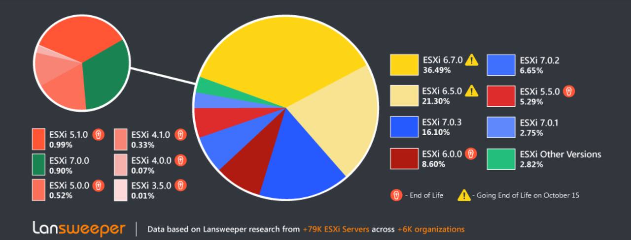 Однако на самом деле количество серверов VMware, достигших EOL сегодня, вероятно, намного больше, поскольку этот отчет основан только на клиентах Lansweeper.
