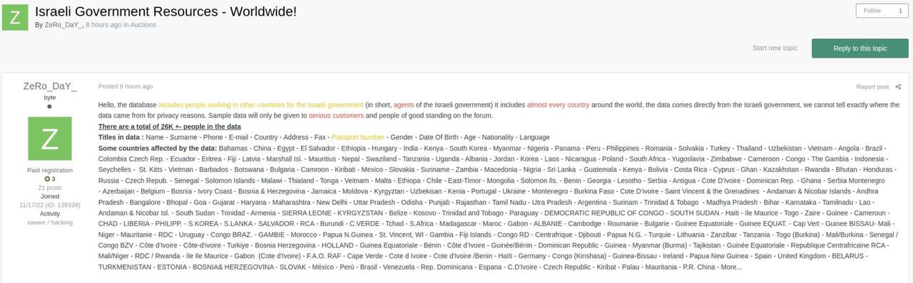 ͏Пока британские силовики развлекаются с FOI, сливая своих же сотрудников и материалы расследований, в даркнете продают базу данных агентуры правительства Израиля в различных странах.