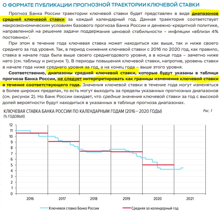 К примеру, если на 2021 год прогнозный диапазон средней ставки будет 4.5-5.5% - это будет означать возможность нахождения ставки в диапазоне 4.5+…~6.5% )