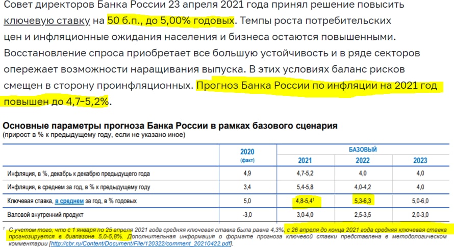 Прогноз на 2022 год 5.3-6.3% по ставке, прогноз по инфляции повышен на этот год повышен до 4.7-5.2%.