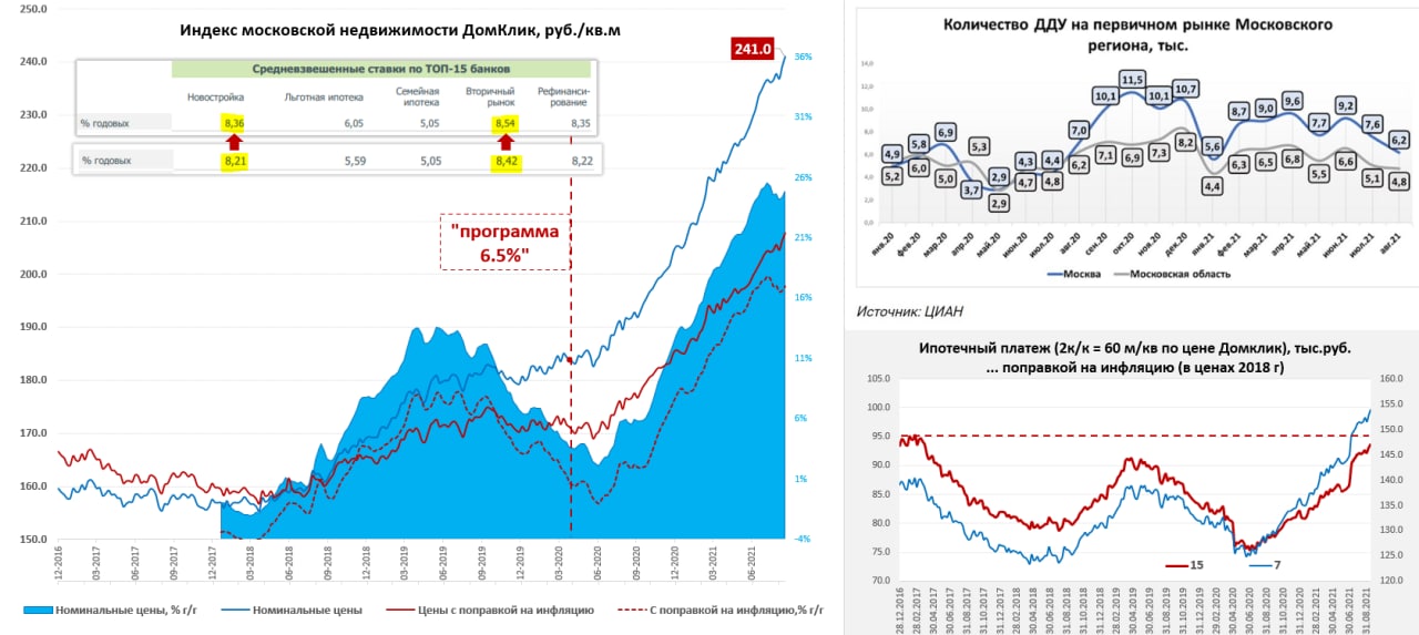 Цена московского метра по данным индекса Мосбиржи на неделе прибавила еще 0.8% и составила 241 тыс. руб., что означает рост на 17.5% с начала года. Средняя за 4 недели цена выросла на 24.9% г/г, цены пока по инерции продолжают расти. В то же время, спрос на новостройки упал на 30%, это по количеству ДДУ (по метражу возможно еще больше).