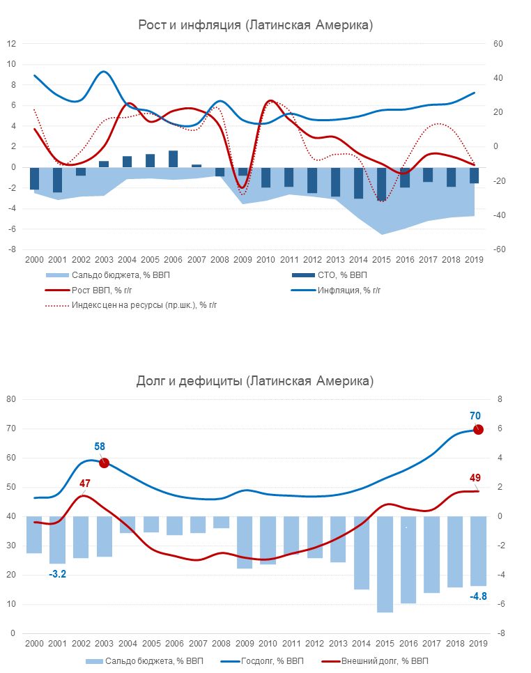 Латинская Америка (протестный карнавал): социальные протесты, риск рецессии, высокий долг и дефицит бюджета, зависимость от притока капитала;