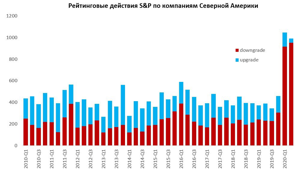 Из 2041 рейтингового действия S&P по рейтингам в Северной Америке с начала года 1868, или 91.5% были негативными, во втором квартале 95.9% все решений были негативными.