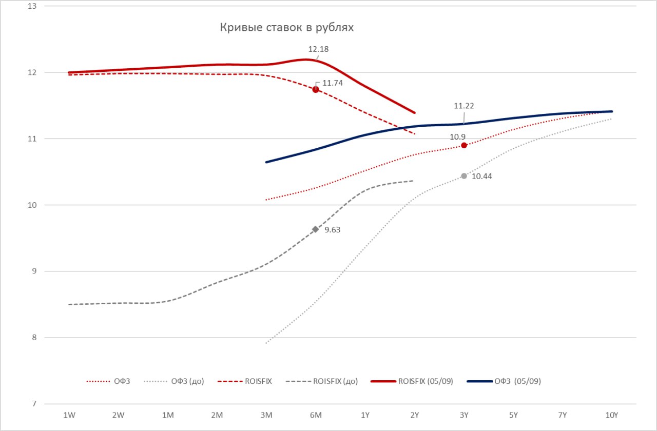 P.S.: Банки взвинтили полугодовые ставки ROISFIX до диапазона 12.5-13% ... кривая ОФЗ вся уехала на ~11.5% после несостоявшихся аукционов... все будут ждать 15 сентября