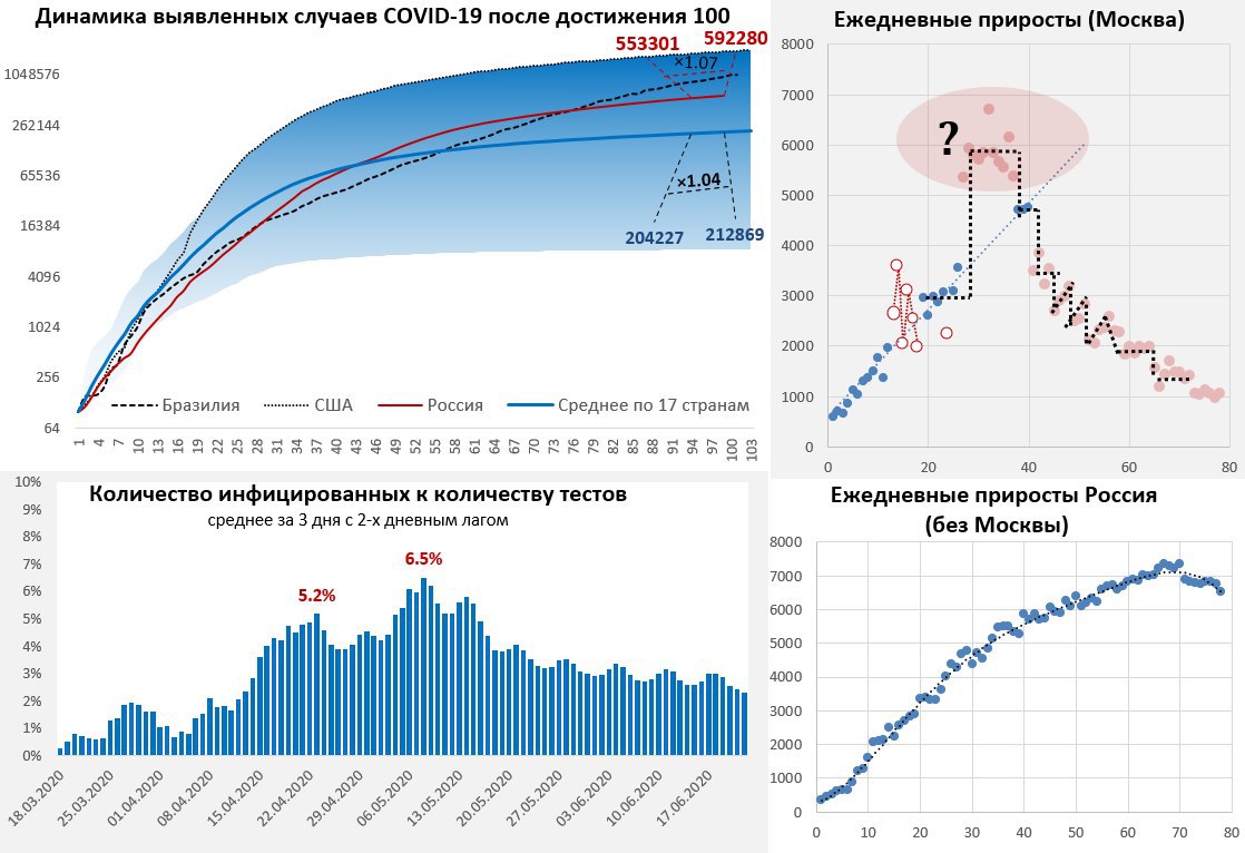 В мире ситуация продолжает обостряться, средний прирост выявленных случаев за три дня приблизился к 160 тыс. в день, средненедельные уровни выше 140 тыс. В США рекордный прирост с начала мая, в Бразилии отдельно и Латинской Америке в целом новые рекорды. ВОЗ наконец-то испугался и заявляет о «новой очень опасной фазе».