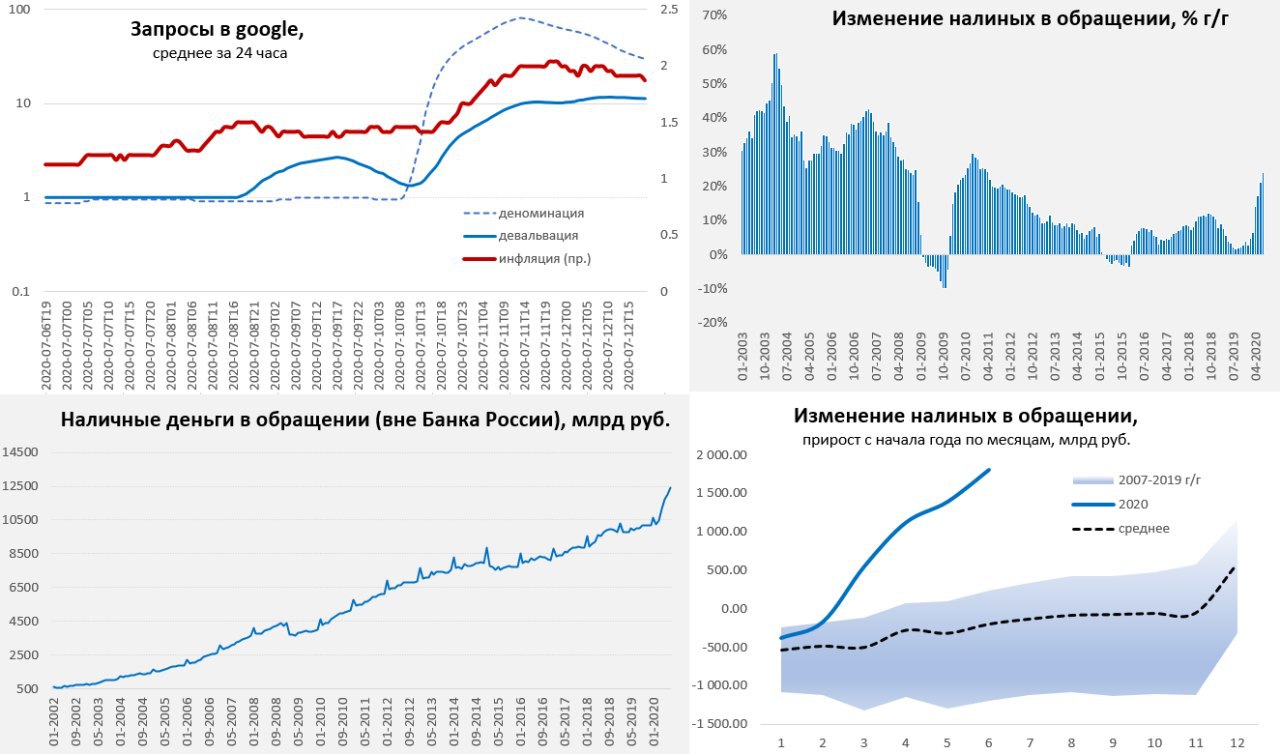 Классический пример плохой коммуникации: «в Банке России комментировать идею о деноминации рубля отказались» - это порождает никому не нужные слухи и обсуждения. И специально для ЦБ график запросов гугла на тему деноминация, девальвация и инфляция.