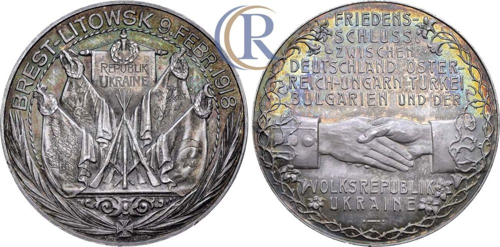 У цікавій мілітарній спільноті трапилося мені зображення німецької пам'ятної медалі, присвяченої підписанню Берестейського миру між Центральними державами та Україною. Шкода, що не виклали її повністю — у неї розкішний аверс з прапорами (за годинниковою стрілкою) Болгарії, Туреччини, Австро-Угорщини і Німеччини і штандартом УНР по центру.