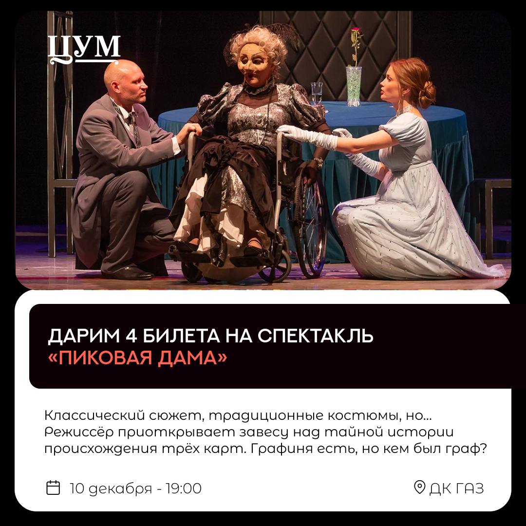 🎁ДАРИМ 4 билета на спектакль «Пиковая дама»♠️